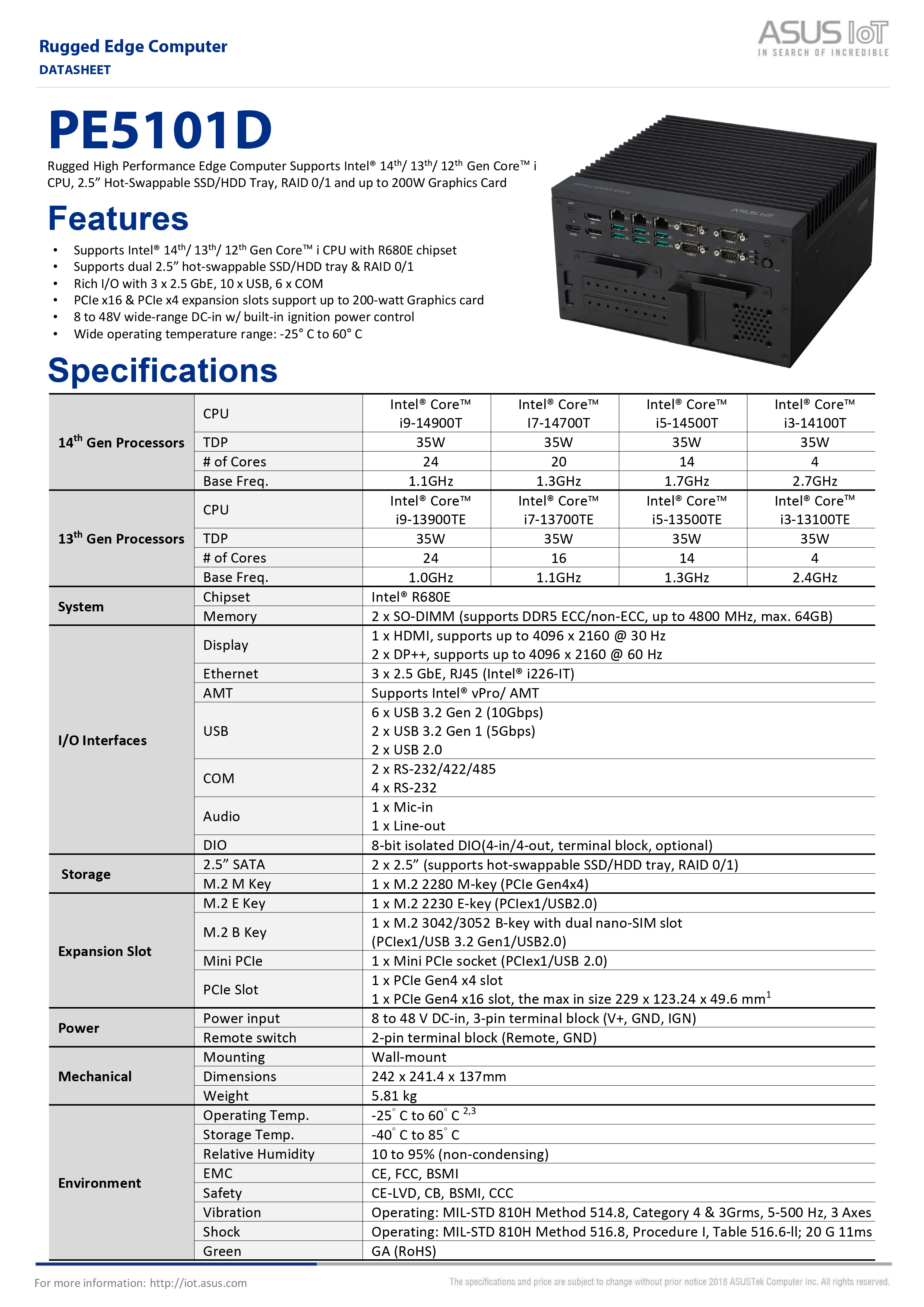 • 支持第14代/第13代/第12代英特爾? 酷睿? i 處理器及 R680E 芯片組