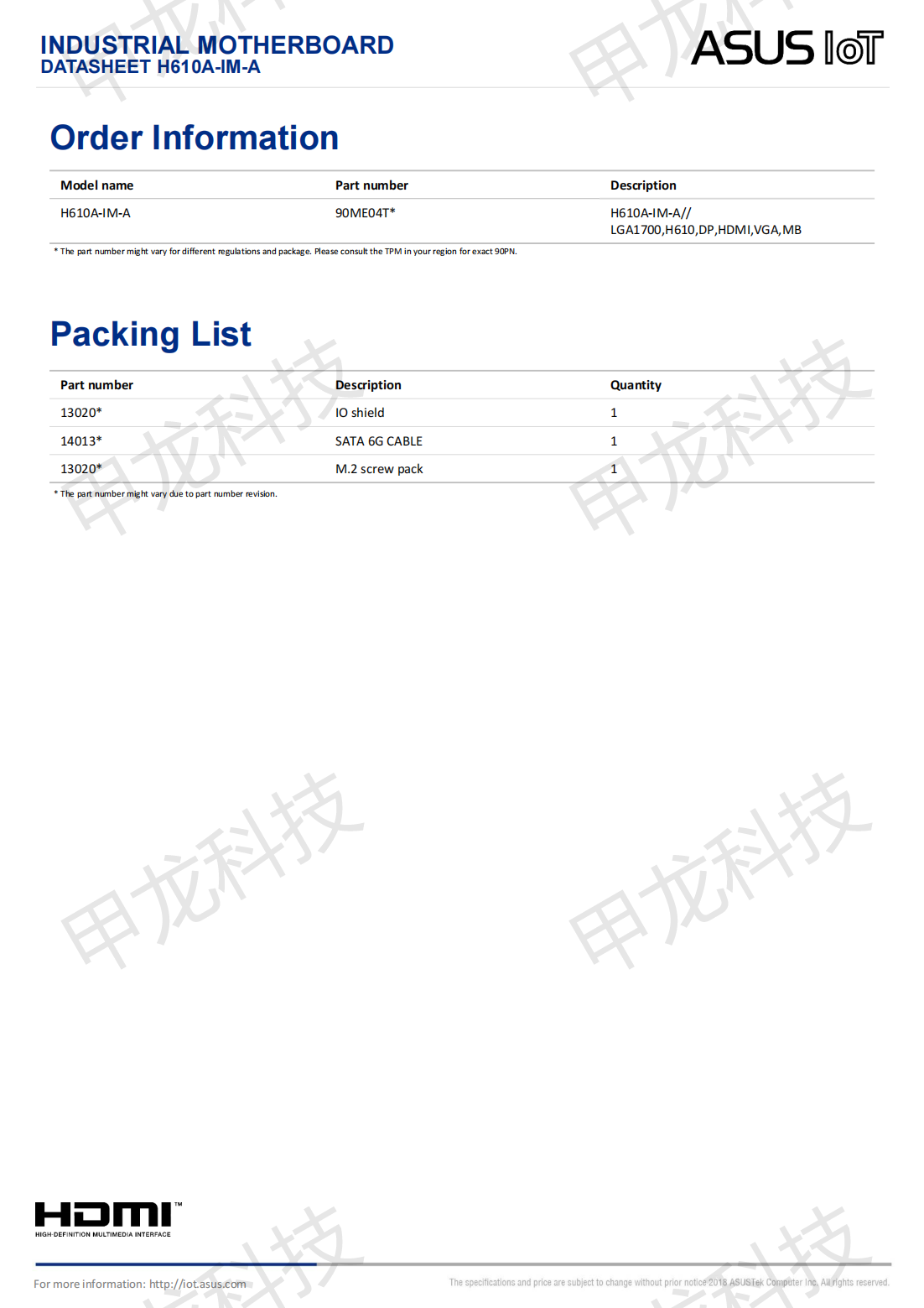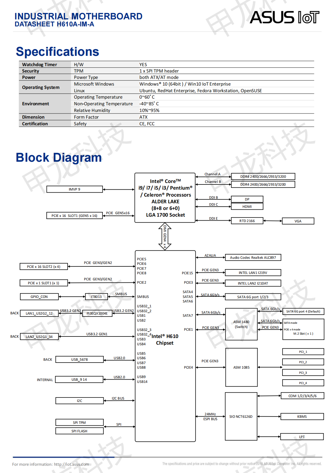 華碩工控主板 12代/13代/14代 H610A-IM-A