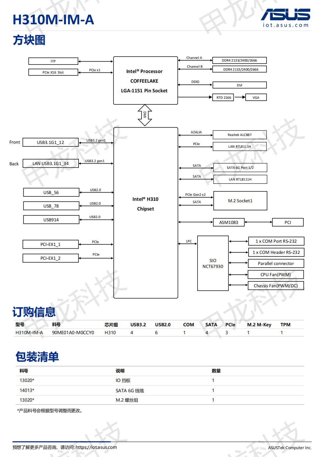 ? 第八/九代Intel? Core? i7/ i5/ i3/ Pentium? / Celeron?處理器(LGA1151) ? 采用Intel? H310芯片組
