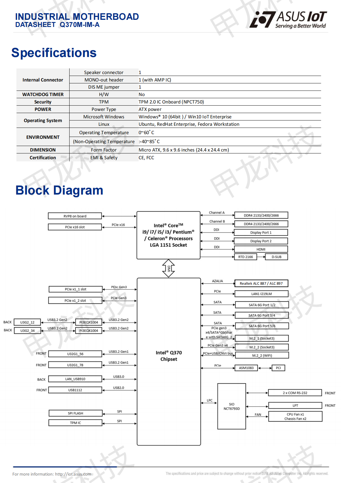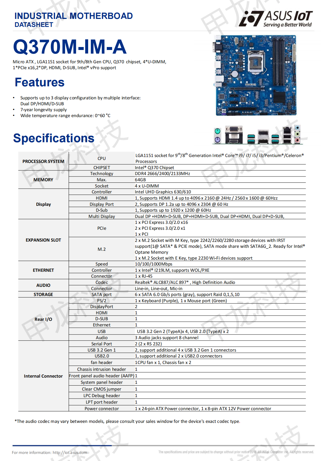 Micro ATX , LGA1151 socket for 9th/8th Gen CPU, Q370 chipset, 4*U-DIMM,