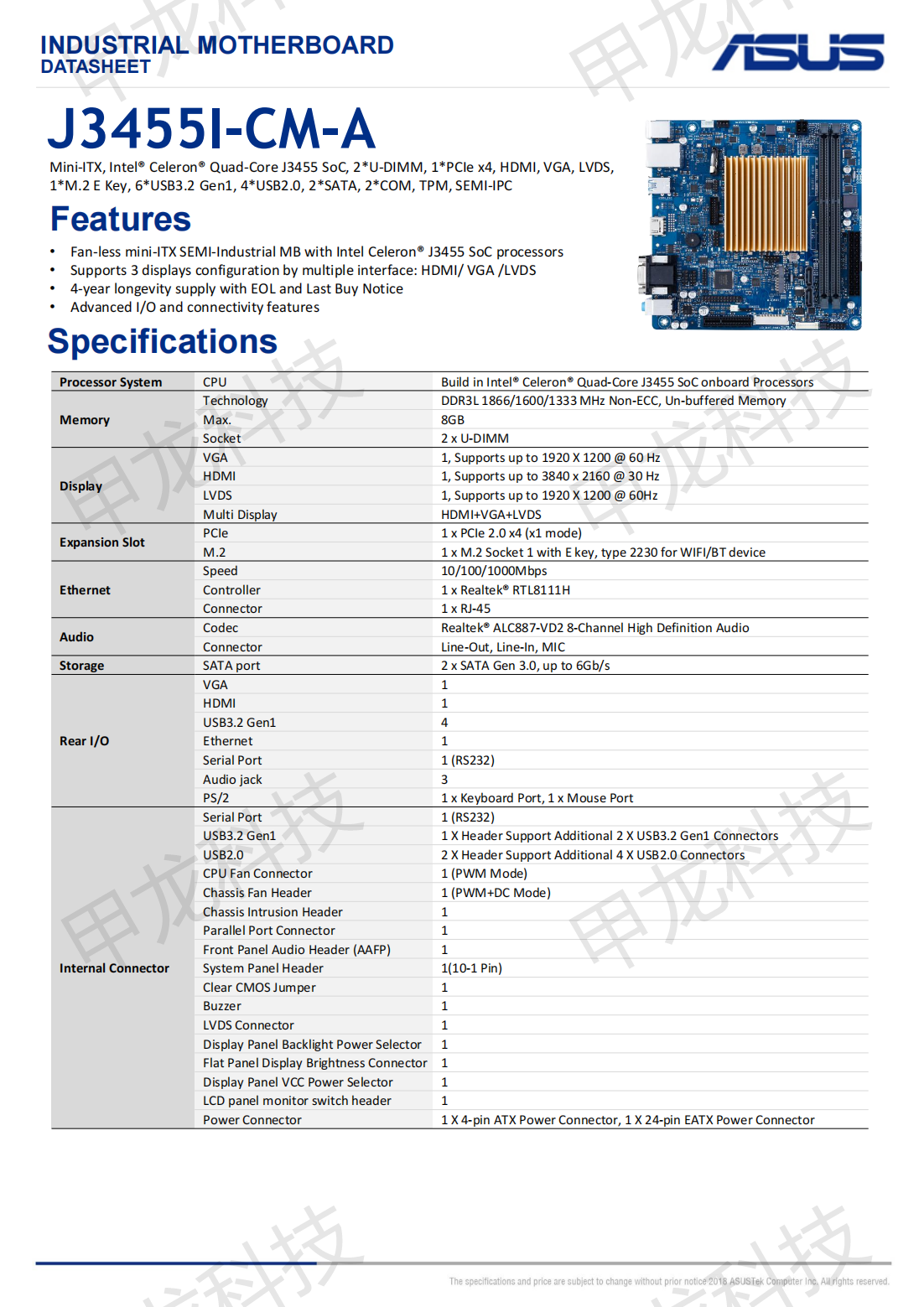 ? Fan-less mini-ITX SEMI-Industrial MB with Intel Celeron? J3455 SoC processors