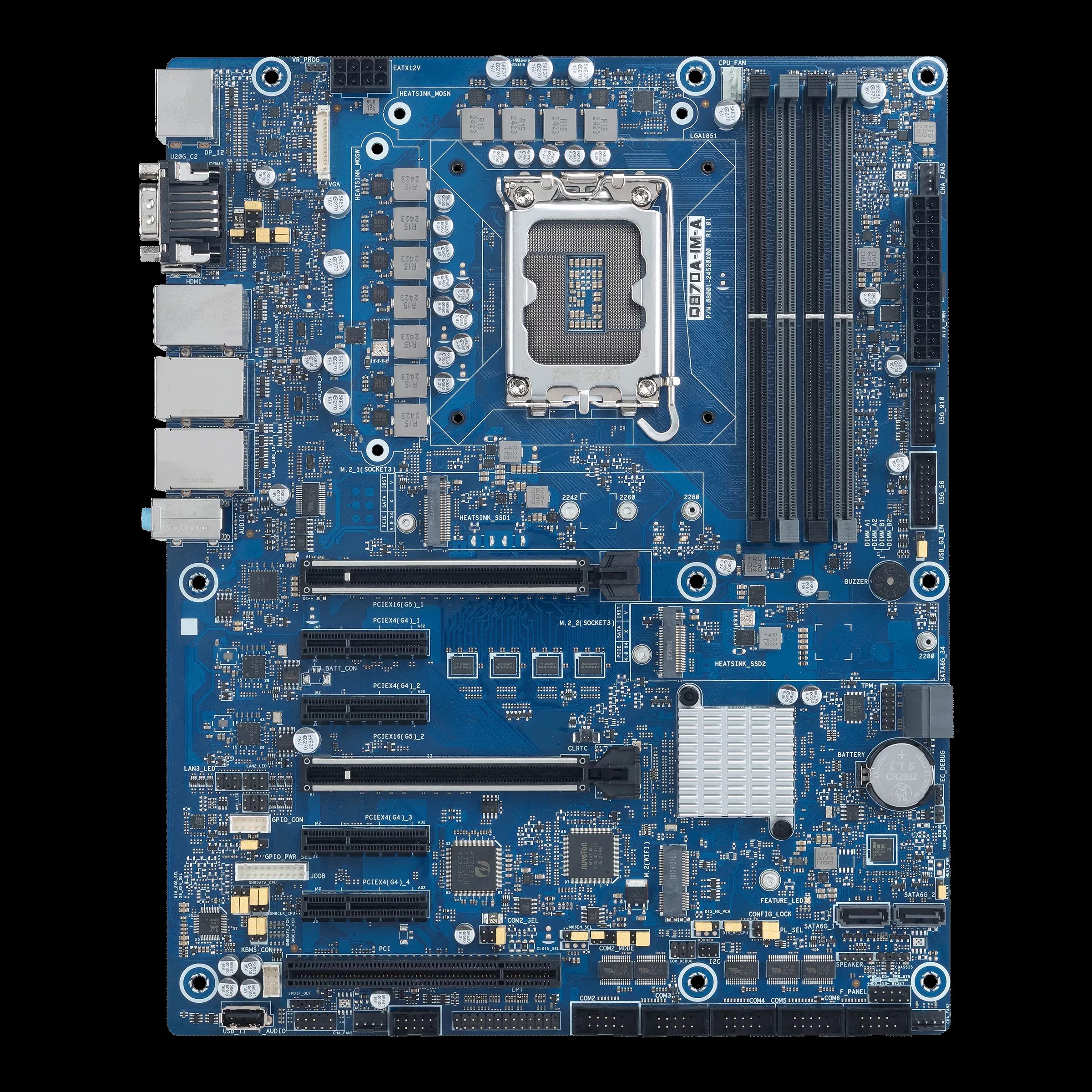 Q870 ATX motherboard, IntelCore? Ultra Processors(Series 2), 125W TDP, 4*U-DIMM, 3*Lan, 2*PCIe x16 slots, 1*PCI, VGA, HDMI, DP++, 3*M.2 slot, 6*COM, 4*SATA, USB 3.2 Gen 2, USB Type C